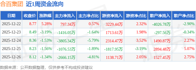 配资账户怎么开 本周盘点(12.22-12.26):合百集团周跌2.52%,主力资金合计净流出8166.74万元