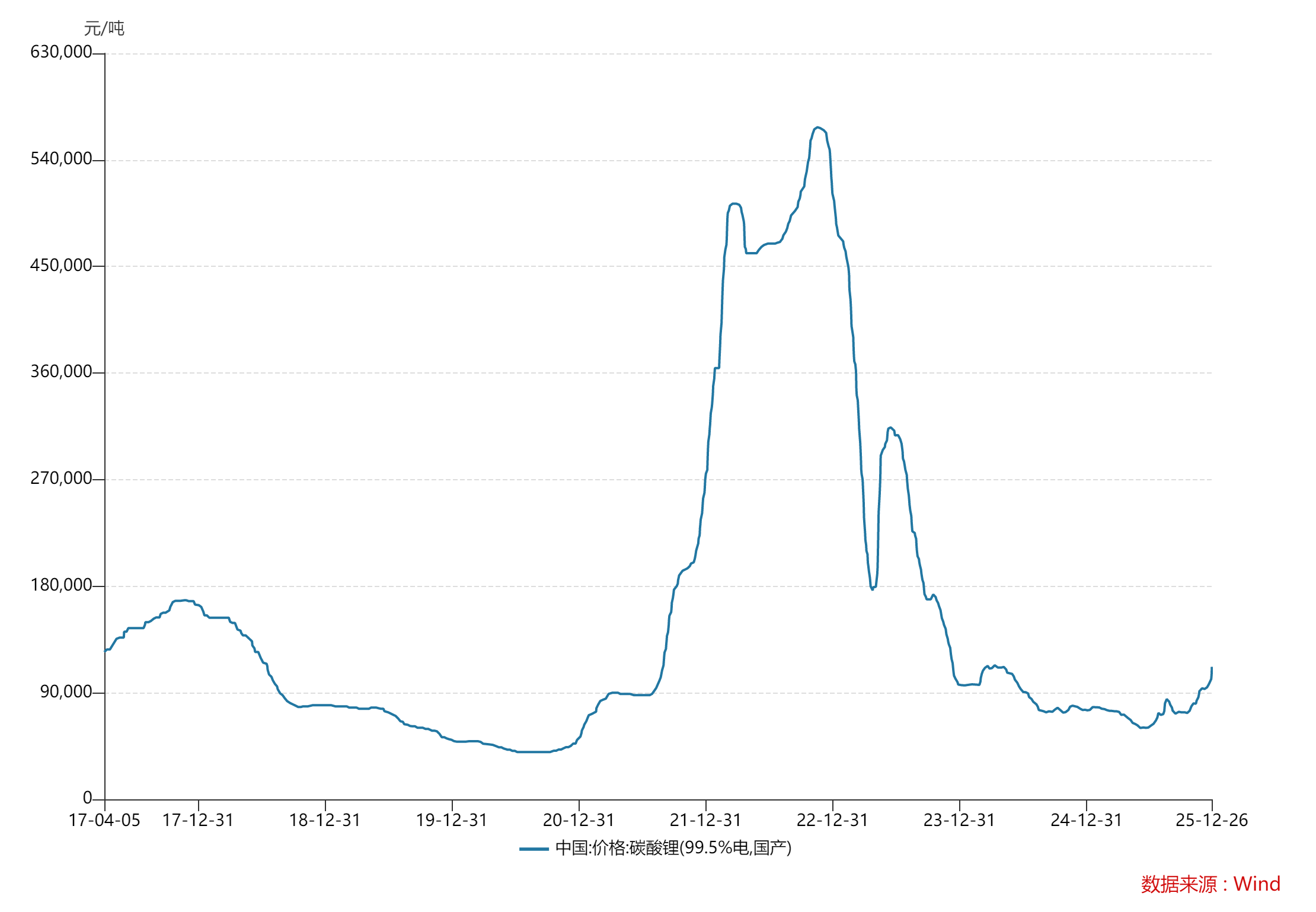 价格是行业景气度的核心风向标,2026年锂价运行区间与中枢水平,将直接决定行业企业的盈利修复节奏与估值水平。